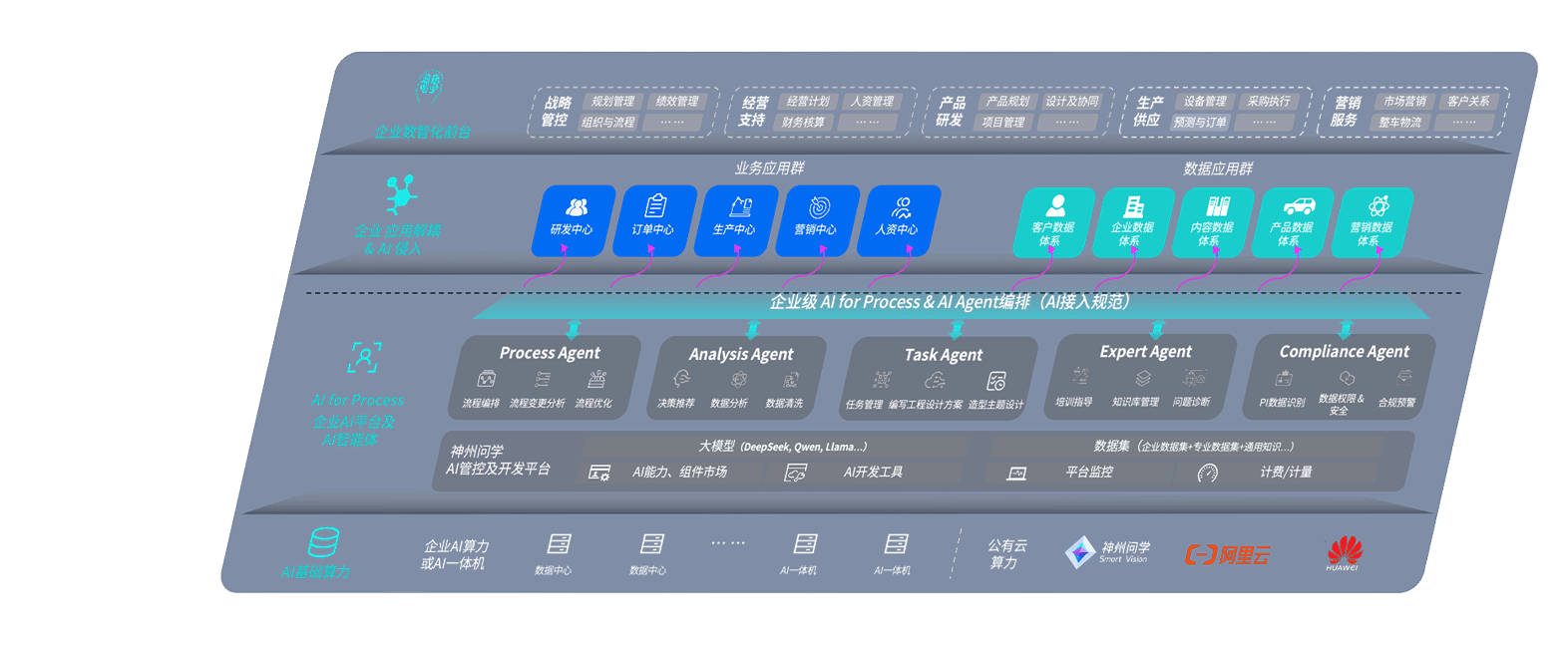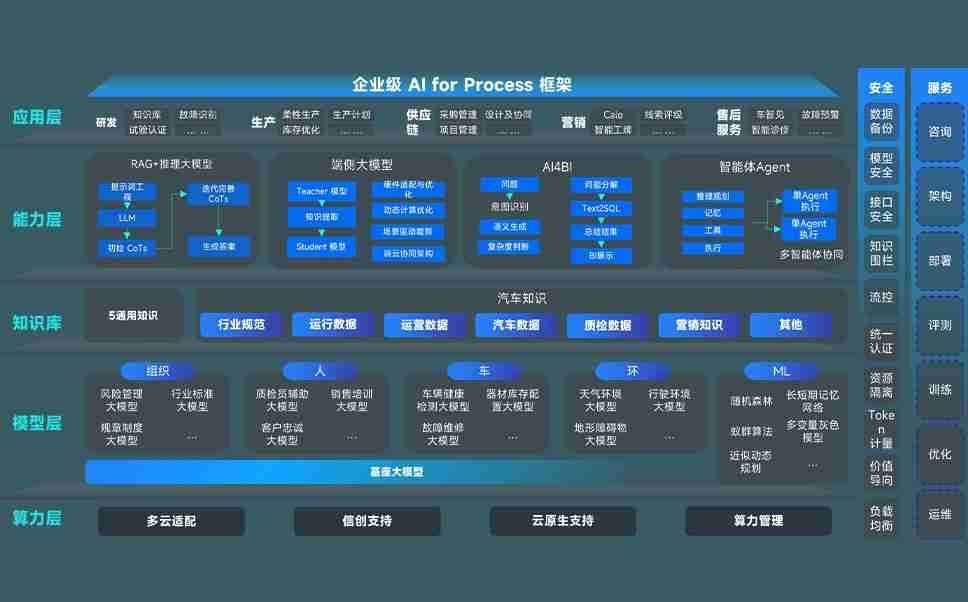 端到端的一站式AI工作空间深度融合了从企业战略规划到日常经营的全流程业务板块,,,,定向解决车企内部领域多、、、、部门多、、、链条长、、、场景碎片化等难题,,,,支持车企快速构建以AI为核心的生产力写作体系,,,实现任务执行与AI能力的无缝集成与交互